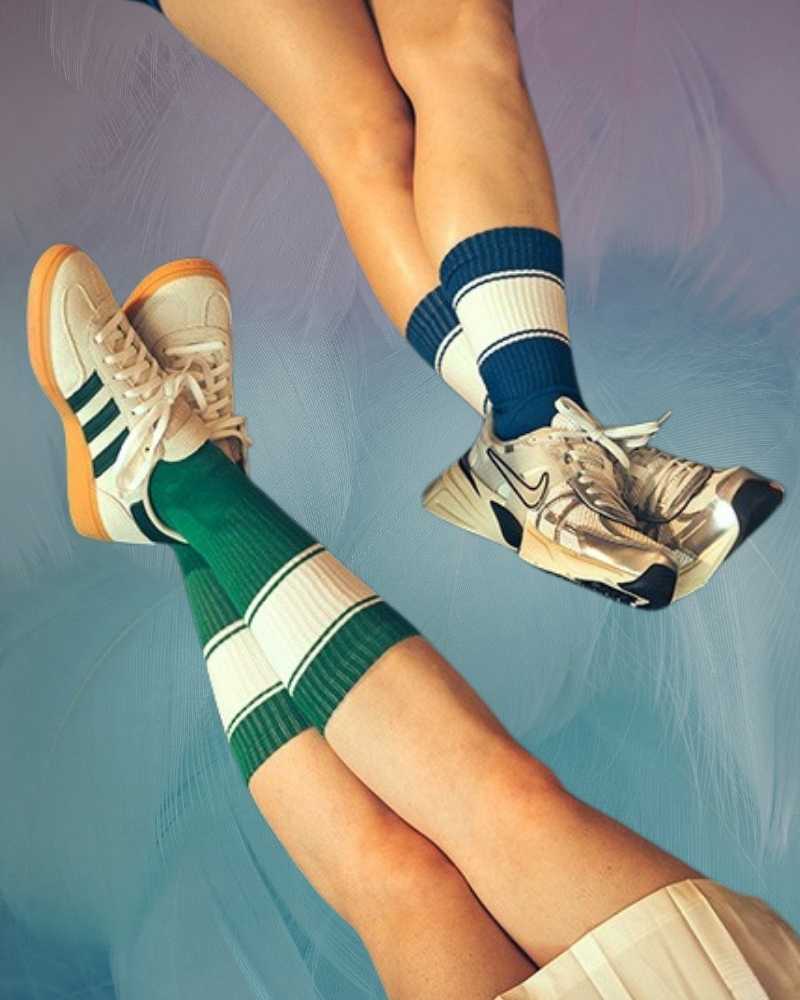 Calzini con zona piede in cotone organico per comfort e traspirabilità superiori. La tomaia presenta una struttura a coste realizzata in una miscela di poliestere riciclato, poliammide ed elastan.