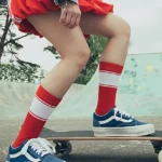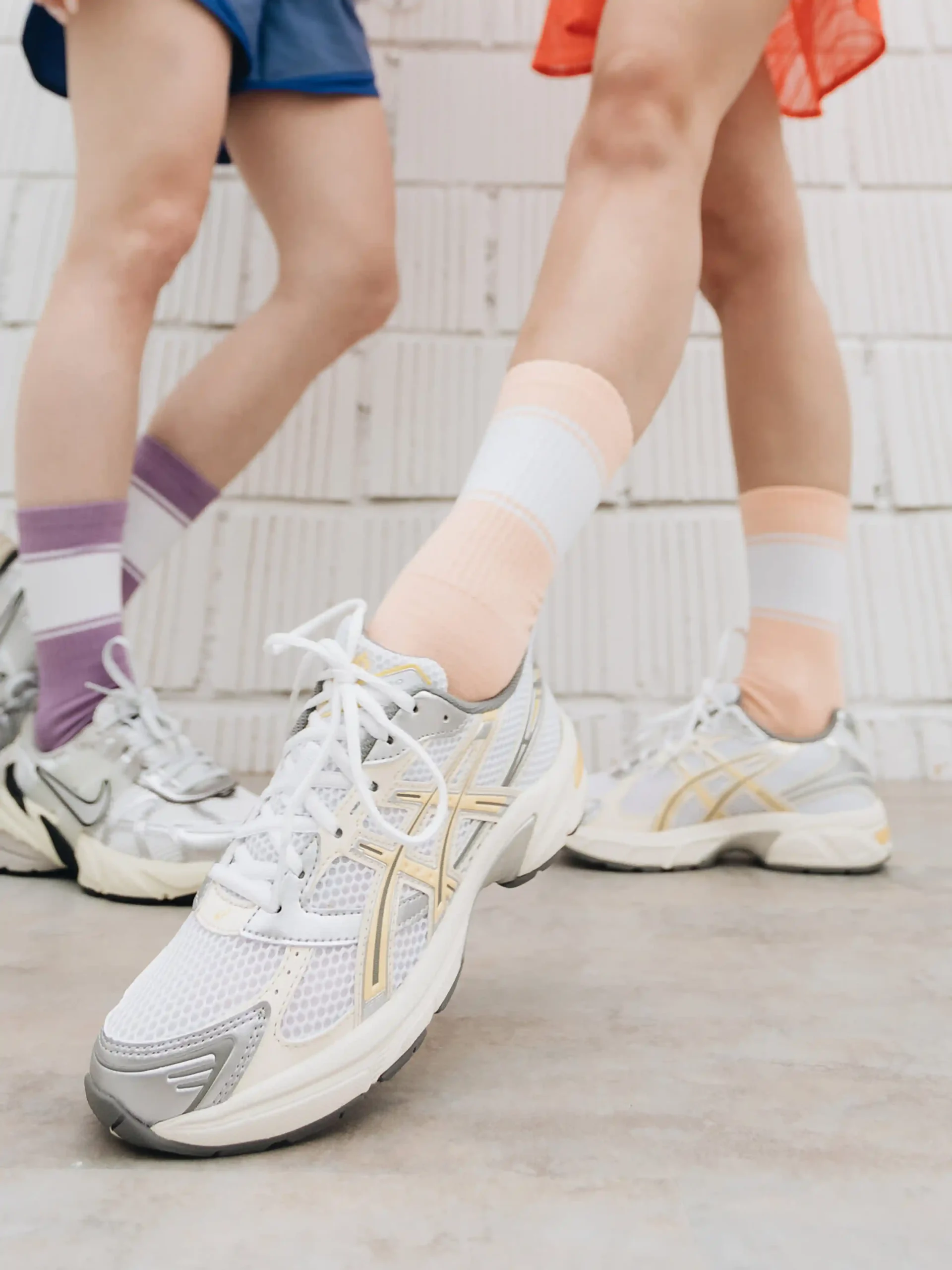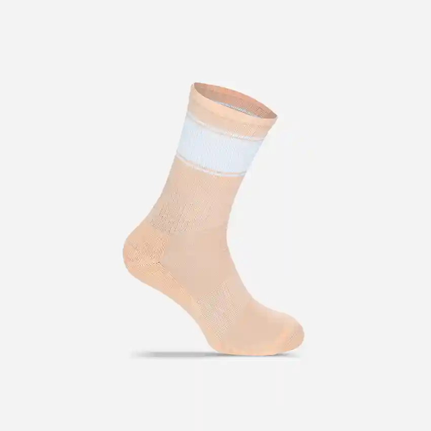 Calzini con zona piede in cotone organico per comfort e traspirabilità superiori. La tomaia presenta una struttura a coste realizzata in una miscela di poliestere riciclato, poliammide ed elastan.