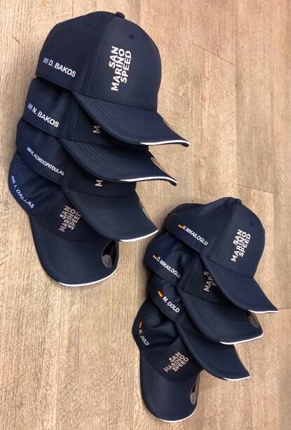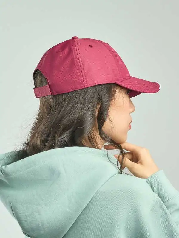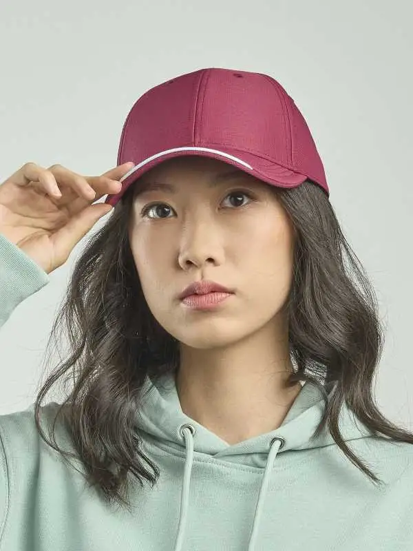 100% poliestere. Cappellino a 6 pannelli, occhielli ricamati, pannello frontale rinforzato, visiera pre-curvata, chiusura in velcro, 4 cuciture su visiera, parasudore in poliestere, piping in contrasto, taglia unica.