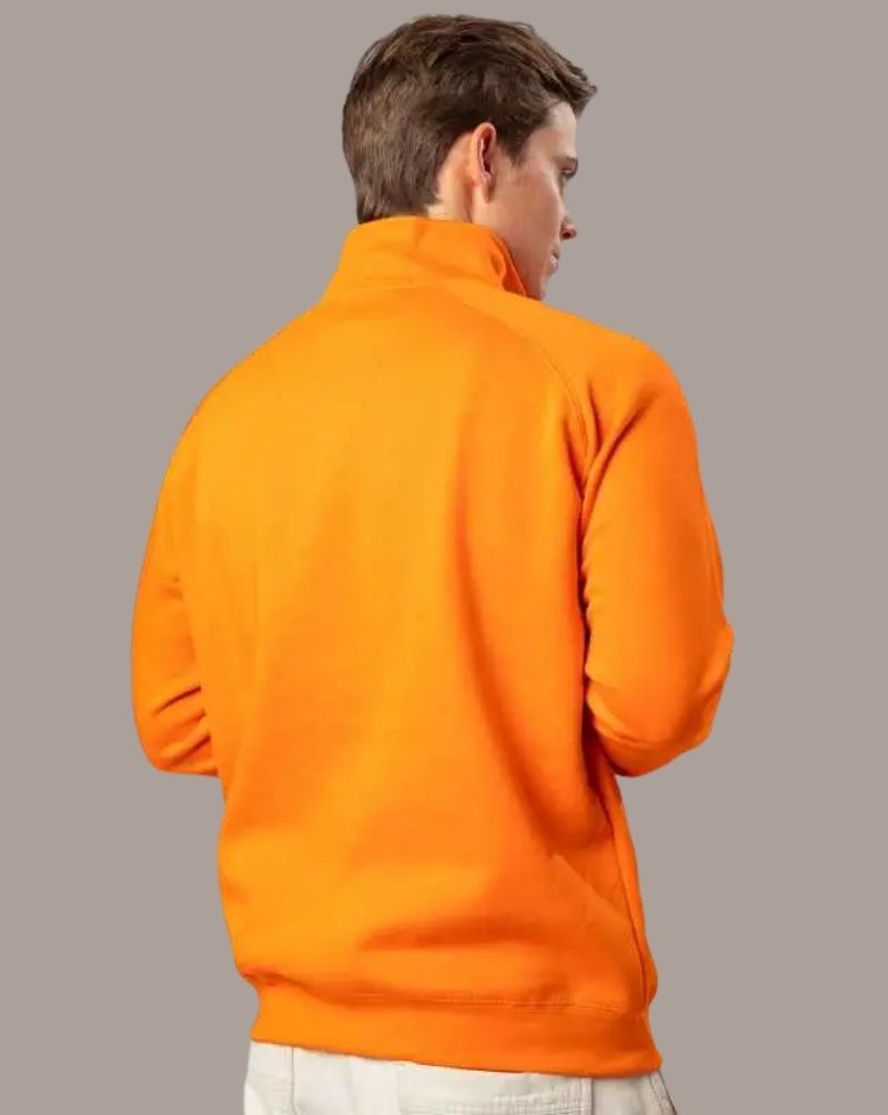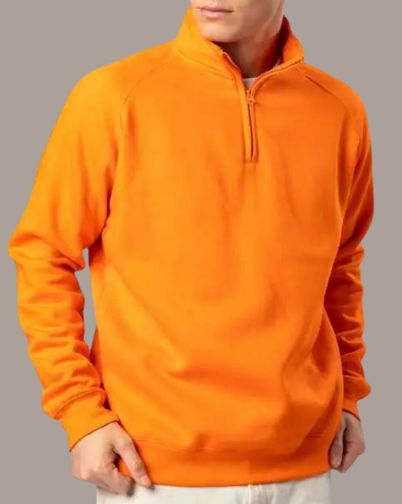 Felpa con maniche raglan, zip ¼ coperta, felpata internamente, struttura con cuciture laterali. Tessuto PST: interno in poliestere ed esterno in 100% cotone.