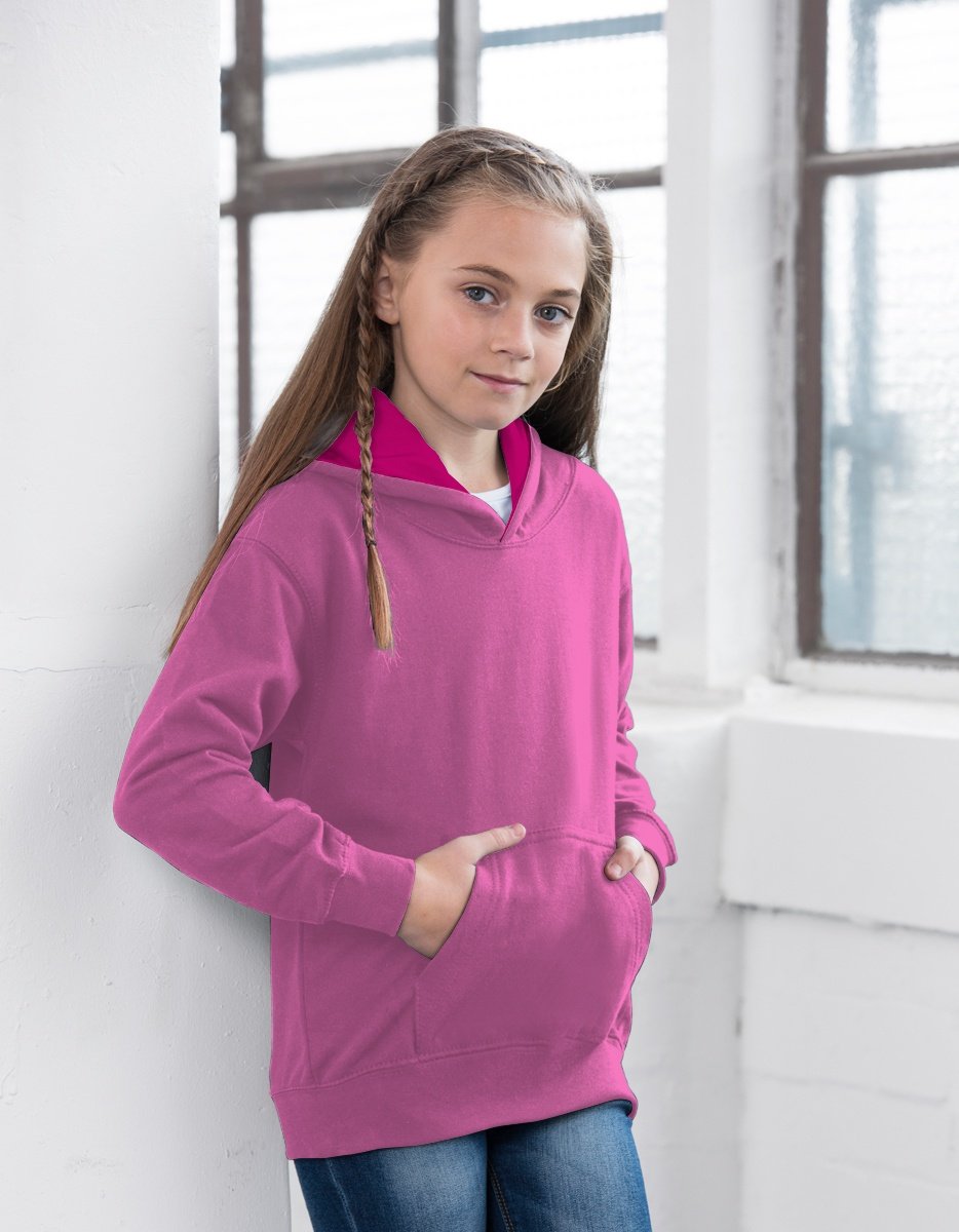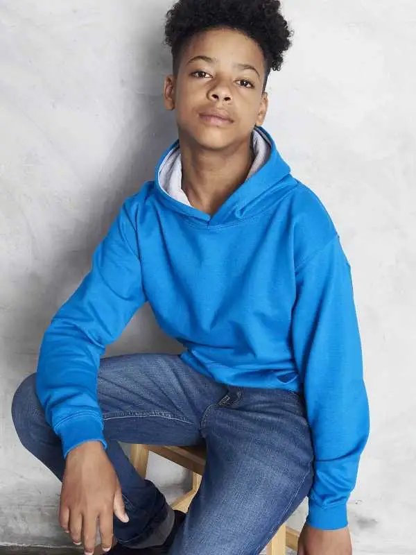 Le felpe bicolore personalizzate bambino sono disponibili in 5 colorazioni esterne, che a loro volta hanno più abbinamenti per l’interno. Tutte le tipologie di felpe bicolor personalizzate bambino sono composte al 80% di cotone e al 20% da poliestere, con taglie disponibili dalla XS alla XL. La felpa dispone inoltre di maniche set-in, cappuccio a doppio strato senza cordoncino, polsini ed orlo inferiore in costina e tasca anteriore a marsupio. La struttura è felpata internamente e composta da cuciture laterali.