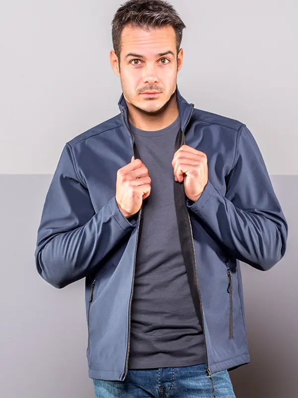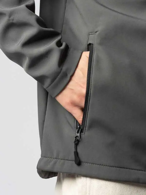 Giacca in softshell a 2 strati, micropile, 2 tasche laterali con cerniera.