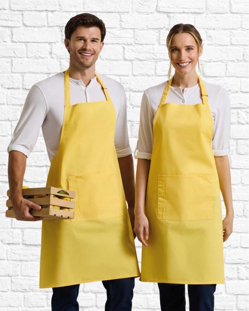 Il Grembiule Personalizzato Tinta Unita personalizzato è realizzato in 65% poliestere, 35% cotone, con lacci del medesimo tessuto. I grembiuli personalizzati sono a taglia unica, le misure sono 75 X 90 cm. Molto comoda la tasca centrale a due scompartimenti, utile per inserire penne e taccuino per i camerieri o chi lavora in sala. Tantissimi sono i colori disponibili per questo modello, troverai sicuramente il colore adatto per il tuo locale. E’ un prodotto ideale per distinguersi con un prodotto di qualità e duraturo, che tu sia un privato o un locale. Offre la possibilità di essere stampato o ricamato con la grafica che più rispecchia il vostro stile, o anche semplicemente con il nome del fruitore. I grembiuli personalizzati sono pratici e belli e possono aiutarti a fare un regalo originale, o a consolidare l’immagine della tua attività . Con un grembiule personalizzato avrai subito l’impressione di essere un grande chef, che sia in cucina davanti ai fornelli, o in giardino davanti alla griglia!