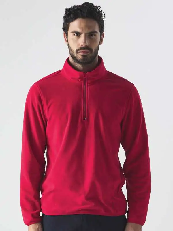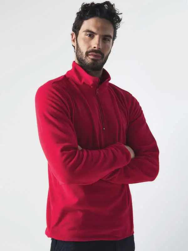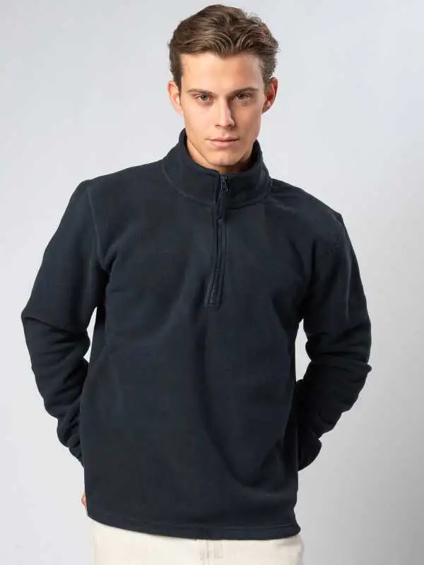 Micropile a mezza zip set-in. Tessuto anti pilling, caldo e leggero. Giromanica e orlo elasticizzati tono su tono. Etichetta strappabile.