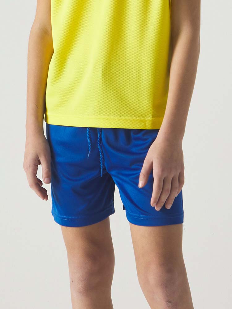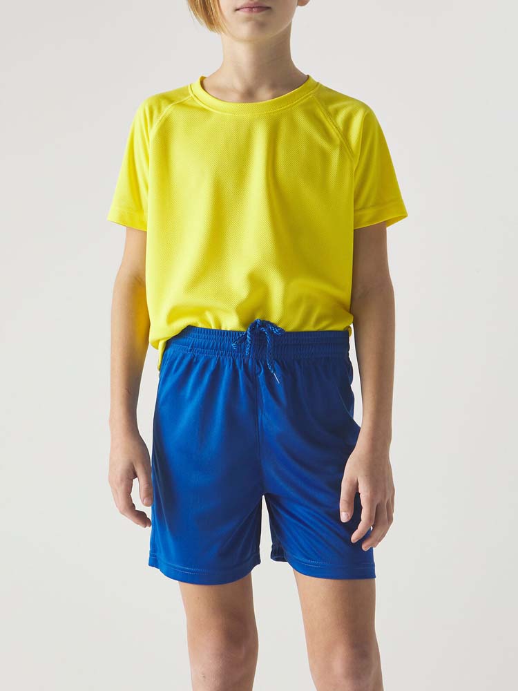 Il pantaloncino sportivo è il classico pantaloncino 100% poliestere perfetto per l’attività fisica. Data la loro leggerezza e comodità, si adattano perfettamente ad ogni attività ma anche per il confort quotidiano. Il pantaloncino sportivo presenta l’elastico in vita con cordoncino in tinta per la facile regolazione. Le rifiniture sono rinforzate per renderlo più resistente e confortevole. Sono disponibili dalla taglia 4 alla 12 anni ed in 6 differenti colori (Nero, Verde, Blu Navy, Blu Royal, Rosso, Bianco)