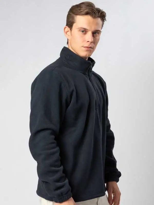 Pile a mezza zip. Tessuto micropile caldo e pesante anti pilling, nastro di rinforzo al collo, polsini elasticizzati e orlo con coulisse. Etichetta strappabile.