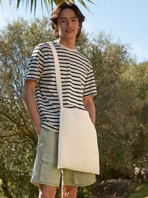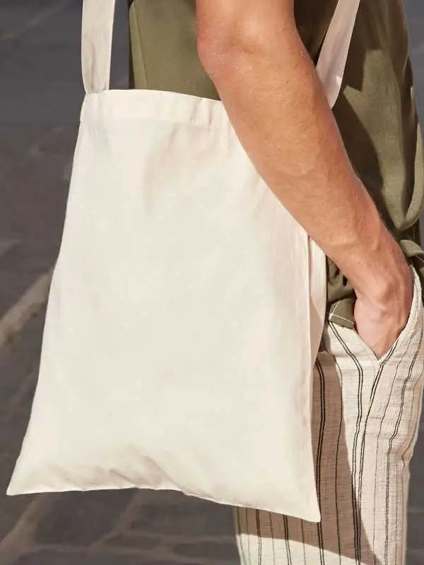 Le shoppers personalizzate sono realizzate in cotone, questo peculiare modello si contraddistingue per i manici particolarmente lunghi, misurano infatti 118 cm e conferiscono all’acquirente la possibilità di portare la propria shopper a tracolla. I sacchetti personalizzati misurano 34 x 40 cm, con una capacità di portata pari a 8 litri, mentre l’area stampabile misura invece 26 x 32 cm ed è personalizzabile sia nel fronte che nel retro della shopper. La gamma di shopper personalizzate online comprende altre due splendide varianti che differiscono da questa per colorazioni disponibili e dimensioni: