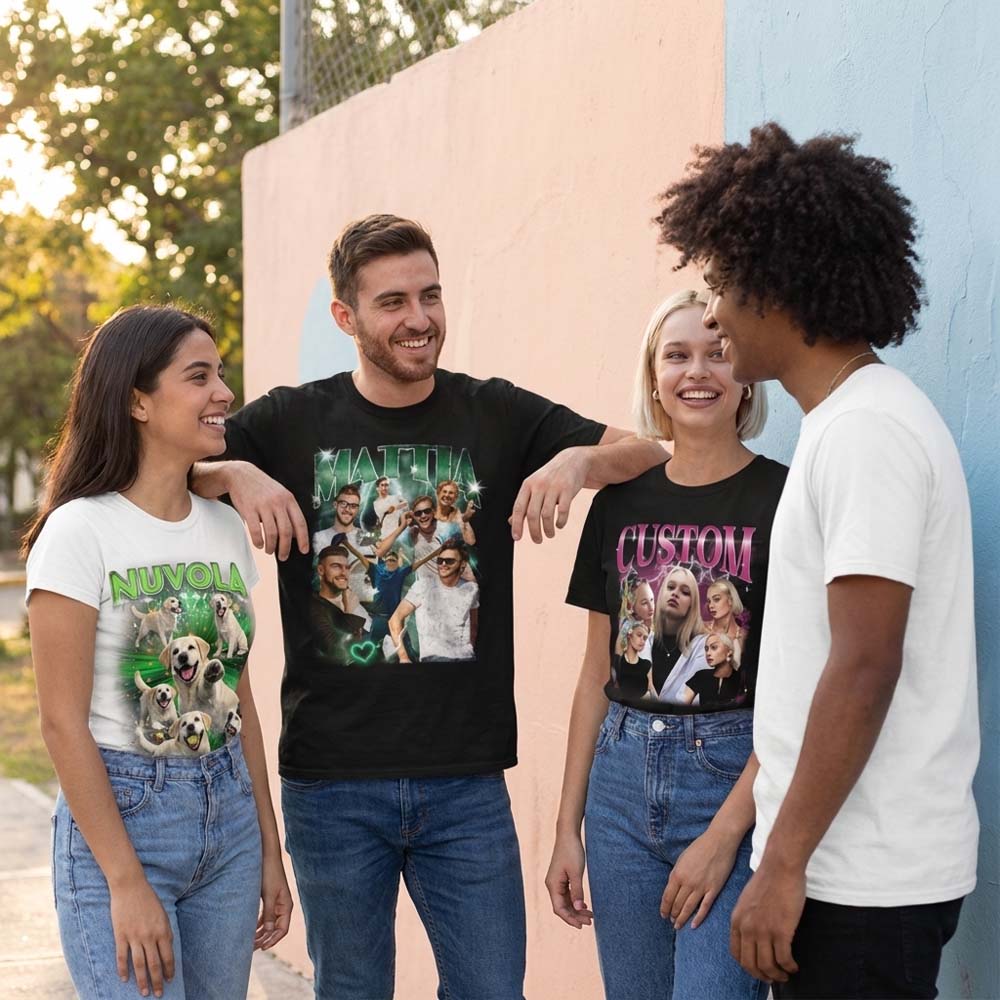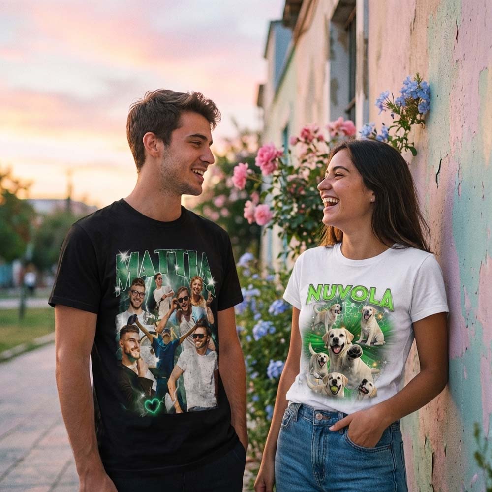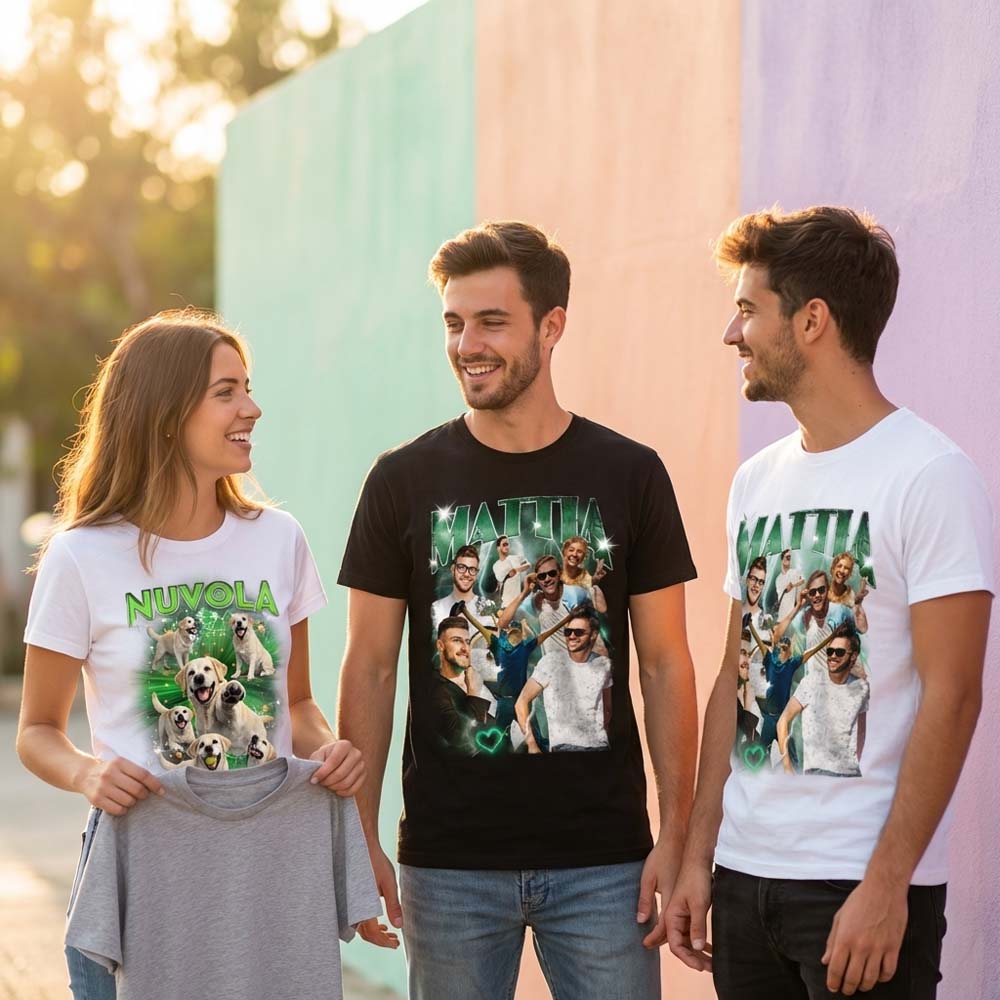 Stampiamo le tue immagini su magliette in cotone di alta qualità, con tecniche di stampa professionali che garantiscono colori brillanti, dettagli nitidi e resistenza ai lavaggi. Le nostre t-shirt personalizzate con foto sono perfette per: