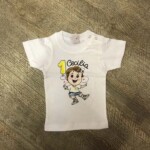 T-shirt girocollo manica corta set-in, struttura con cuciture laterali, doppie cuciture al collo. Taglia 0/0 con 2 bottoni a pressione sulla spalla.